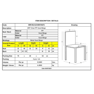 ΕΜ128,9 ART Καρέκλα PP Sand Beige (πόδι PP Sand Beige) / Pro
