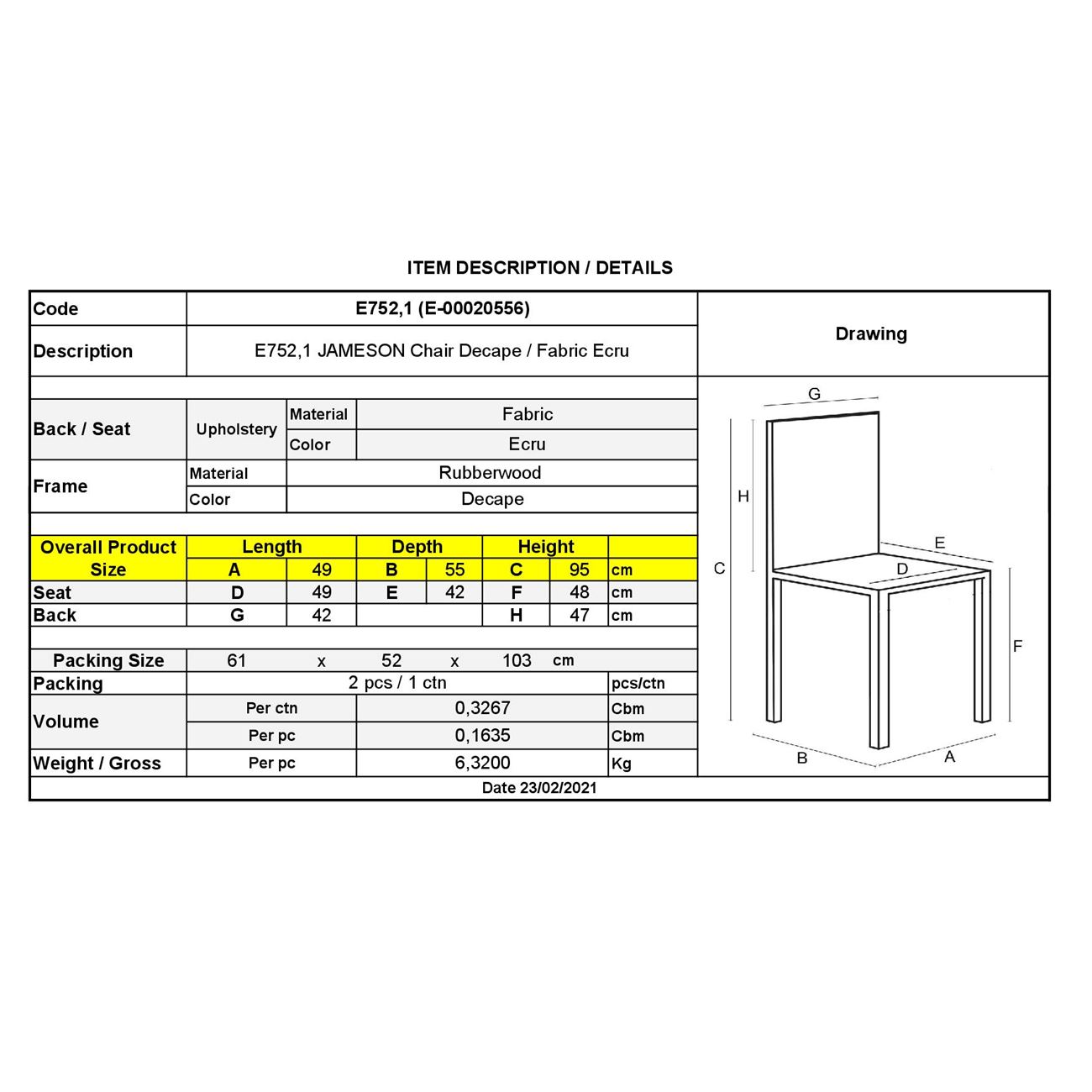 Ε752,1 JAMESON Καρέκλα Decape/Ύφασμα Εκρού