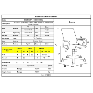 ΕΟ254,21F BF2101-F (με ανάκλιση) Χρώμιο Πολυθρόνα Μωβ/Μαύρο Mesh