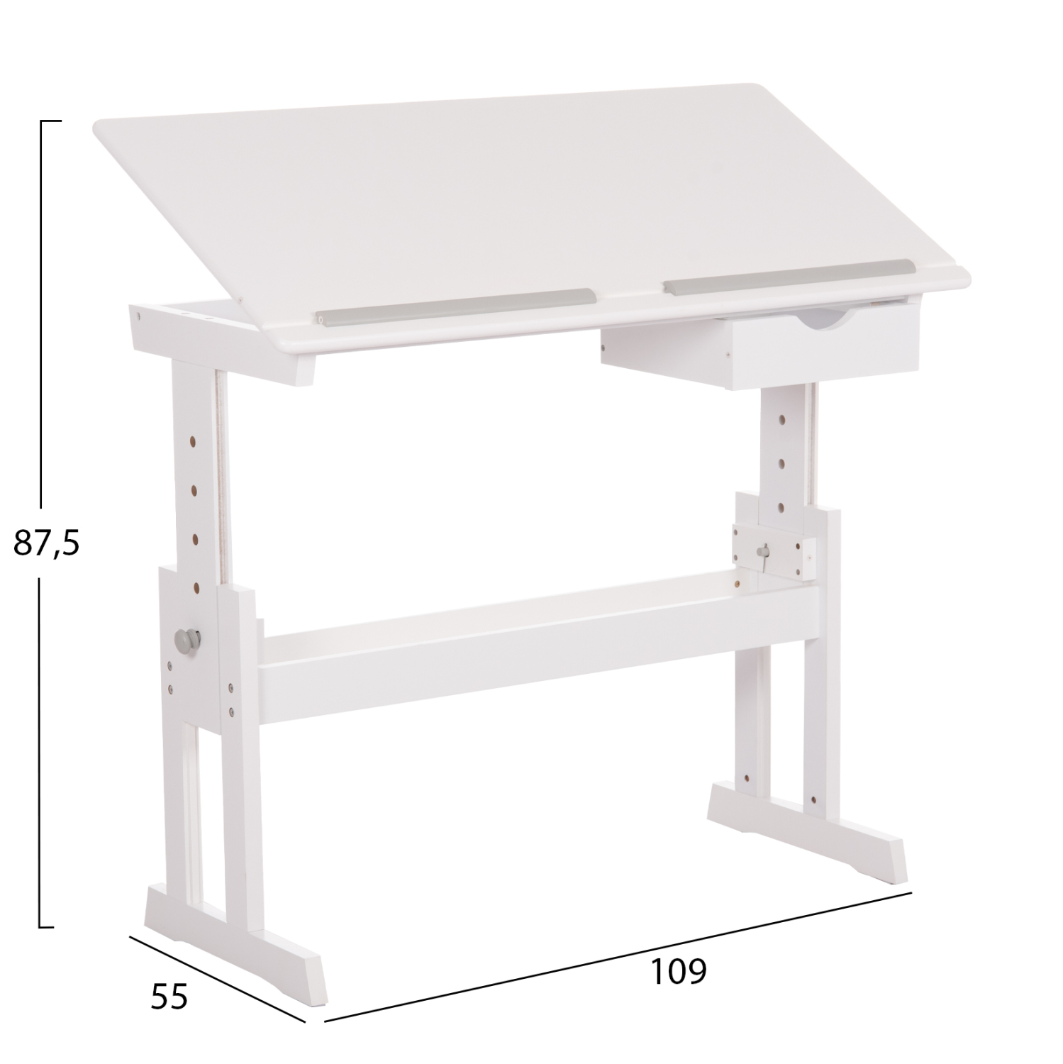 Επιστροφή στο ΚατάστημαΤο γραφείο/σχεδιαστήριο FB918289 είναι μια νέα ποιοτική πρόταση στα έπιπλα γραφείου. Οι διαστάσεις του το καθιστούν ιδανικό για τέτοια χρήση, ενώ τα χαρακτηριστικά του επιτείνουν την πρακτικότητά του. Η επιφάνεια του μπορεί να είναι οριζόντια, ή να της δώσετε κλίση με έναν εύχρηστο μεταλλικό μηχανισμό έτσι ώστε να μην «καμπουριάζουν» τα παιδιά κατά την χρήση. Επίσης, το ύψος της επιφάνειας είναι ρυθμιζόμενο, που σημαίνει ότι γίνεται κατάλληλο και για χρήση από όρθια θέση. Τέλος, το συρτάρι κάτω από την επιφάνεια προσφέρει τον απαραίτητο αποθηκευτικό χώρο για γραφική ύλη και τετράδια. Συνδυάστε το με μια καρέκλα γραφείου ανάλογων διαστάσεων για να δημιουργήσετε το ιδανικό σετ.