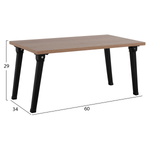 Επιστροφή στο ΚατάστημαΤο τραπεζάκι FB98965.11 διαθέτει μια επιφάνεια από μελαμίνη σε καρυδί χρώμα και 4 κοντά μεταλλικά πόδια σε μαύρο χρώμα. Η ιδιαιτερότητα είναι ότι τα πόδια είναι πτυσσόμενα και μπορεί να χρησιμοποιηθεί τόσο ως απλό βοηθητικό τραπεζάκι σε πολλούς χώρους, όσο και ως τραπεζάκι «δίσκος» για το κρεβάτι, εάν θέλετε να πάρετε το πρωινό σας ή οτιδήποτε άλλο. Και φυσικά μπορεί να μαζευτεί και να αποθηκευτεί στον μικρότερο δυνατό χώρο. Ένα πολύ πρακτικό έπιπλο που δεν πρέπει να λείπει από κανένα σπίτι.