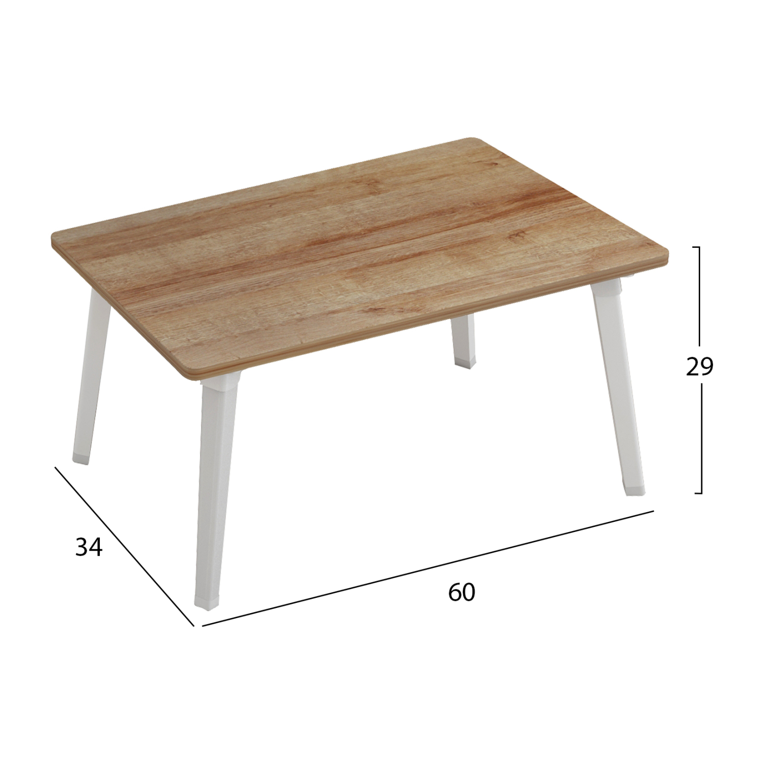Επιστροφή στο ΚατάστημαFB98965.12 Βοηθητικό τραπεζάκι-δίσκος κρεβατιού—– Το τραπεζάκι FB98965.12 διαθέτει μια επιφάνεια από μελαμίνη σε χρώμα ΦΥΣΙΚΟΥ ΞΥΛΟΥ και 4 κοντά μεταλλικά πόδια σε ΛΕΥΚΟ χρώμα. Η ιδιαιτερότητα είναι ότι τα πόδια είναι πτυσσόμενα και μπορεί να χρησιμοποιηθεί τόσο ως απλό βοηθητικό τραπεζάκι σε πολλούς χώρους, όσο και ως τραπεζάκι «δίσκος» για το κρεβάτι, εάν θέλετε να πάρετε το πρωινό σας ή οτιδήποτε άλλο. Και φυσικά μπορεί να μαζευτεί και να αποθηκευτεί στον μικρότερο δυνατό χώρο. Ένα πολύ πρακτικό έπιπλο που δεν πρέπει να λείπει από κανένα σπίτι.