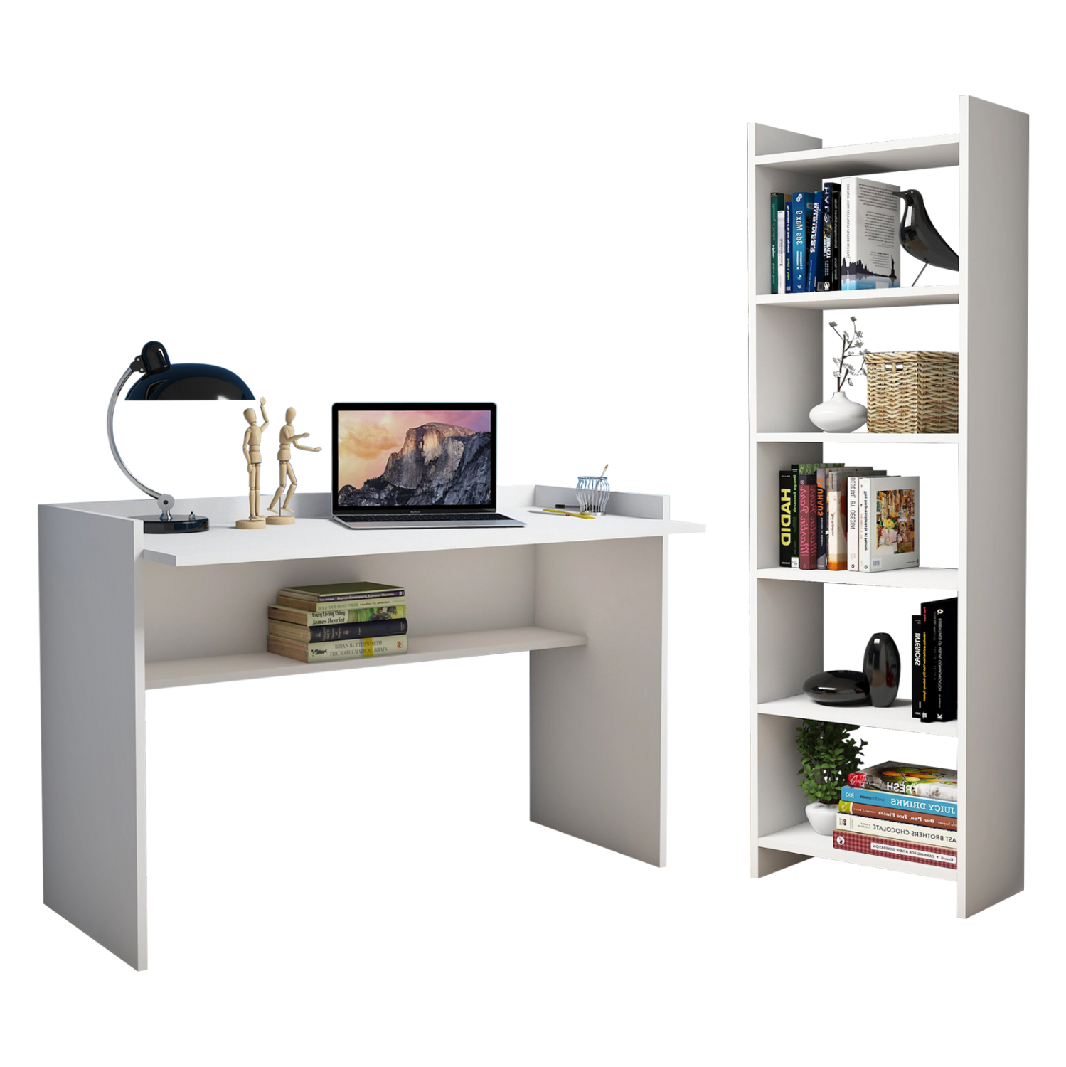 Επιστροφή στο ΚατάστημαΣετ γραφείου με κομψό και λιτό σχεδιασμό, αποτελούμενο από γραφείο και βιβλιοθήκη, κατασκευασμένα από ανθεκτική μελαμίνη πάχους 18 χιλιοστών υψηλής ποιότητας, σε λευκή απόχρωση.