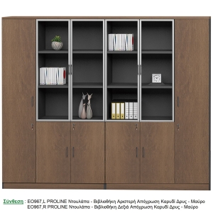 Επιστροφή στο ΚατάστημαPROLINE Ντουλάπα – Βιβλιοθήκη Γραφείου Αριστερή, Πεντάφυλλη (2 Γυάλινα) Καρυδί Δρυς-Μαύρο